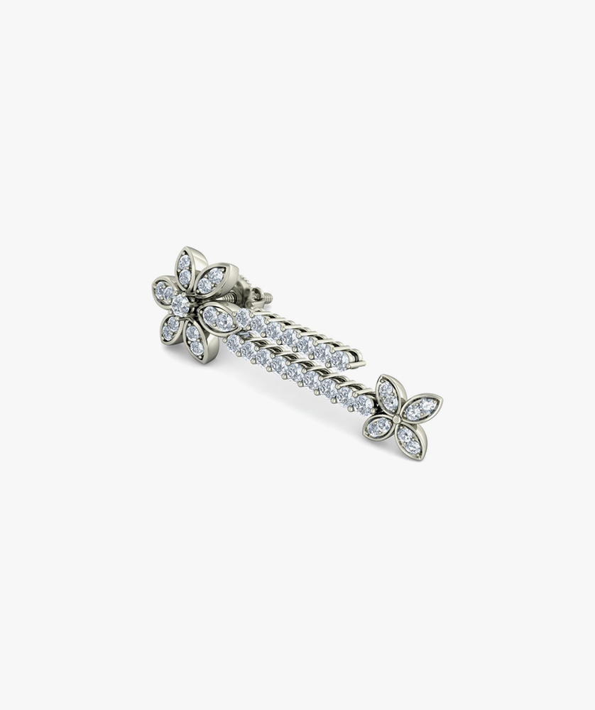 Silver Rhinestone Flower Long Earrings for Women Alloy Drops
